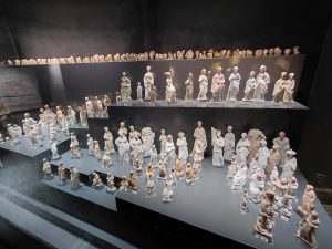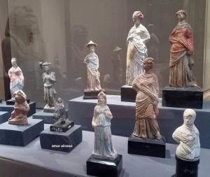 🛖🧱التماثيل دي كانت مصنوعة من “التراكوتا” اللي هو الطين المحروق، و تم اكتشاف كميات كبيرة في بلاد يونانية زي اليونان نفسها، وإيطاليا، وآسيا الصغرى. أما المجموعة اللي موجودة دلوقتي في متحف الإسكندرية القومي، فهي كانت متجمعة من أماكن مختلفة زي مقابر مصطفى كامل، ومنطقة الإبراهيمية، و منطقة الحضرة